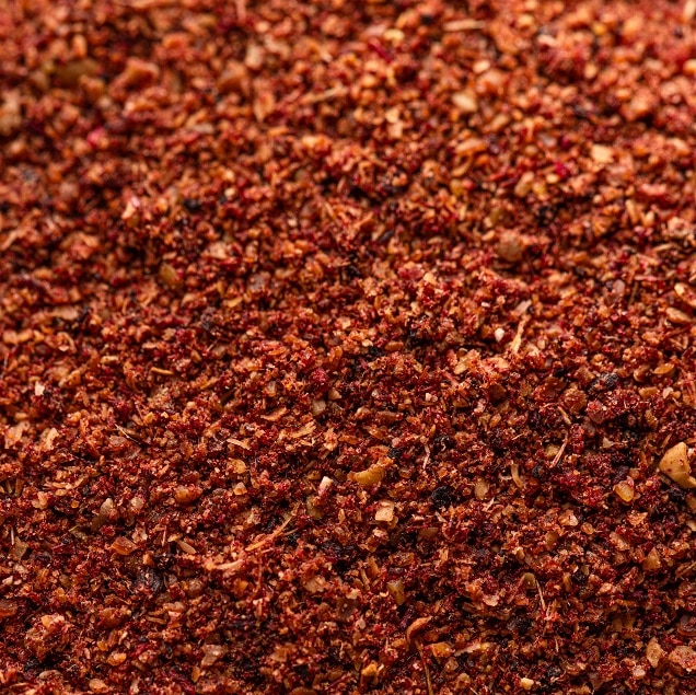 Le sumac (Rhus coriaria) est une baie sauvage qui pousse dans les régions méditerranéennes et moyen-orientales. Sa poudre rouge bordeaux était utilisée dans la Rome Antique comme acidifiant culinaire bien avant l'introduction du citron en Europe. Pline l'Ancien en vantait déjà les mérites.